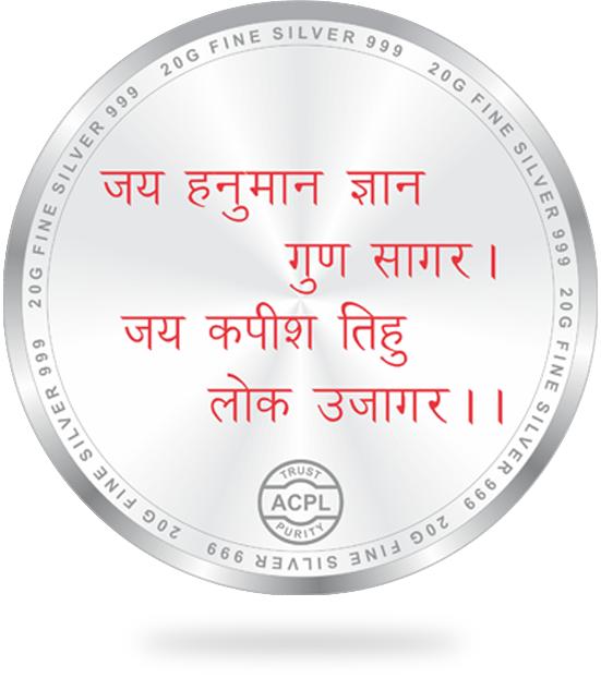This coin depicts a beautiful potrayal of Hanuman Ji, The back side of the coin potrays hanuman chalisa sloka design.