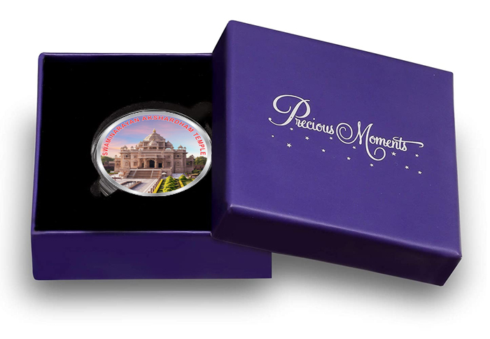 This Coin Depicts a Beautiful Portrayal of Swaminarayan Akshardham Temple, The Back Side of The Coin Portrays Swaminarayan Ji.